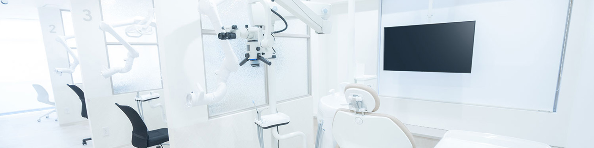 プライバシーに配慮し、半個室の診療室を完備しています。周囲を気にせず、お口のお悩みや治療についてご相談いただけます。リラックスして治療を受けていただける空間です。